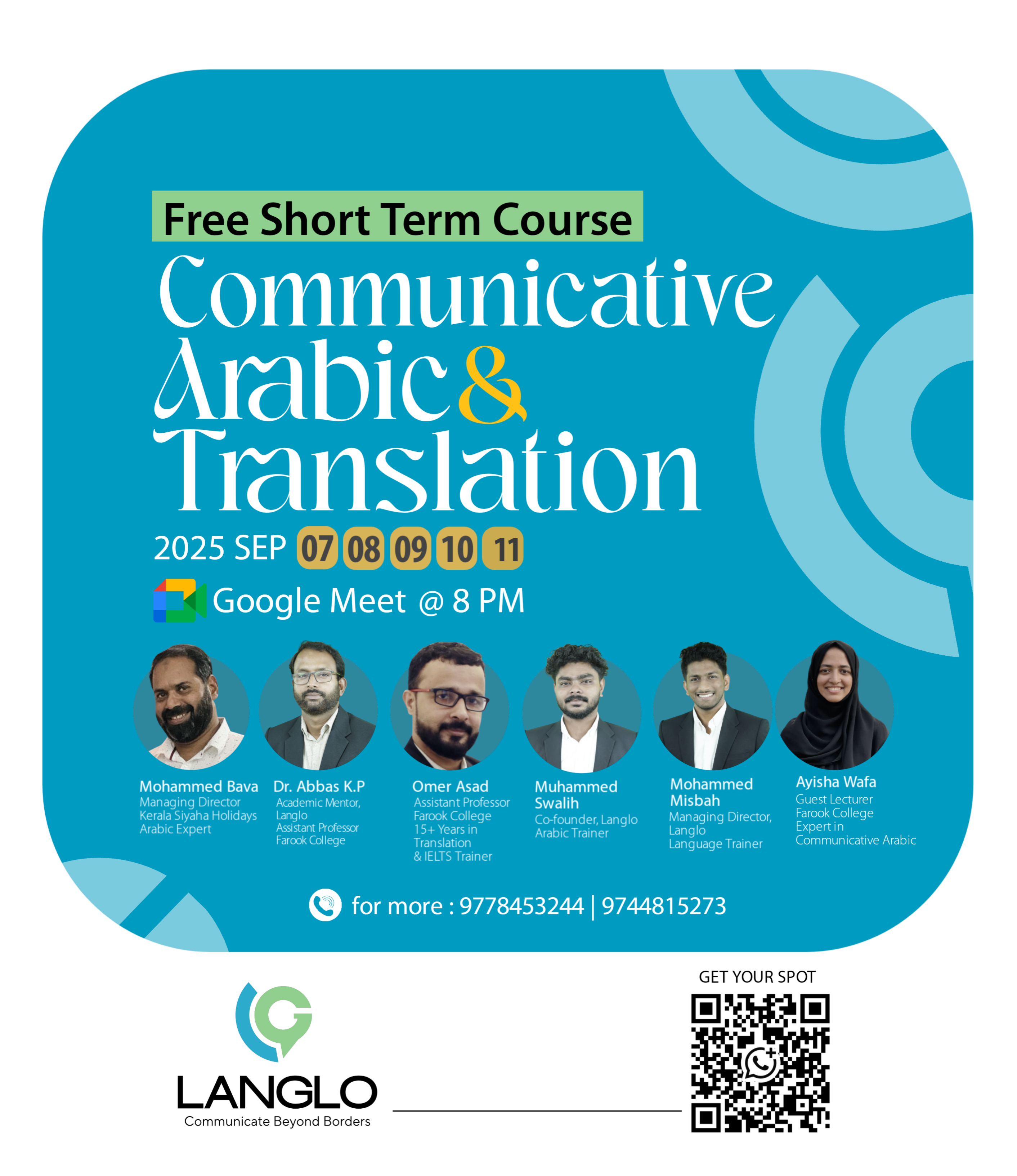 ​We recently hosted a successful online free short term course on Communicative Arabic & Translation. Participants gained practical, real world skills in both conversational and written Arabic. The event was a truly engaging and valuable learning experience for everyone who attended.